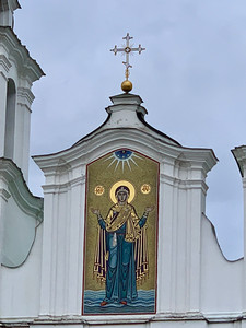 I see the bell towers and white ahead of me so I continue to walk toward them. I’m walking up from behind but I see all of the other old town structures that make this such a beautiful area. The Old Town sits on the eastern side of the Svislach River, bordered by Vul Maxima Bahdanovicha. Known as Troitskoe Predmestiye, or “Trinity Suburb”, the Old Town is not really that old. The original 17th and 18th century houses were recreated in the 1980’s. However, it’s a delightful place to walk around in. You can relax in quaint cafés or browse through the souvenir shops.