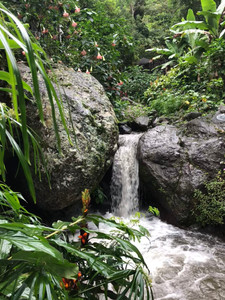 It should have been peaceful with the sound of the waterfall, heavy rain, and a light breeze but not even that lessened life’s stress that I was seeking to shed. I read and edited pics while I rocked back and forth while taking in the scenery of mist coming over the adjacent mountains, As the wind picked up, I went inside for a lay on the bed and watched a movie, what a lazy afternoon. With the lessening rain, I went down to the deck for a view of the waterfall again. Maybe the sight along with the sound of the rushing water would prove therapeutic. Around 4pm, I called down to the restaurant. The agreed to make something for me. I asked for the chefs salad. This consisted of lettuce, mango, nuts, cucumbers, kale, blue cheese, and vinaigrette. The didn’t have kale and did substitute Parmesan for blue cheese, it was tasty but I could tell that I would be hungry again quickly, I asked for dinner at 7pm and preordered pasta with pesto with a local root vegetable. I started watching a movie while laying in the hammock again, until dinner time. Fed but not filled, I retuned to my movie and then watched another. I had really done nothing today and that was fine, I wish it had been better fir another hike or the rain had brought me some serenity but neither happened. That’s how it goes sometimes.